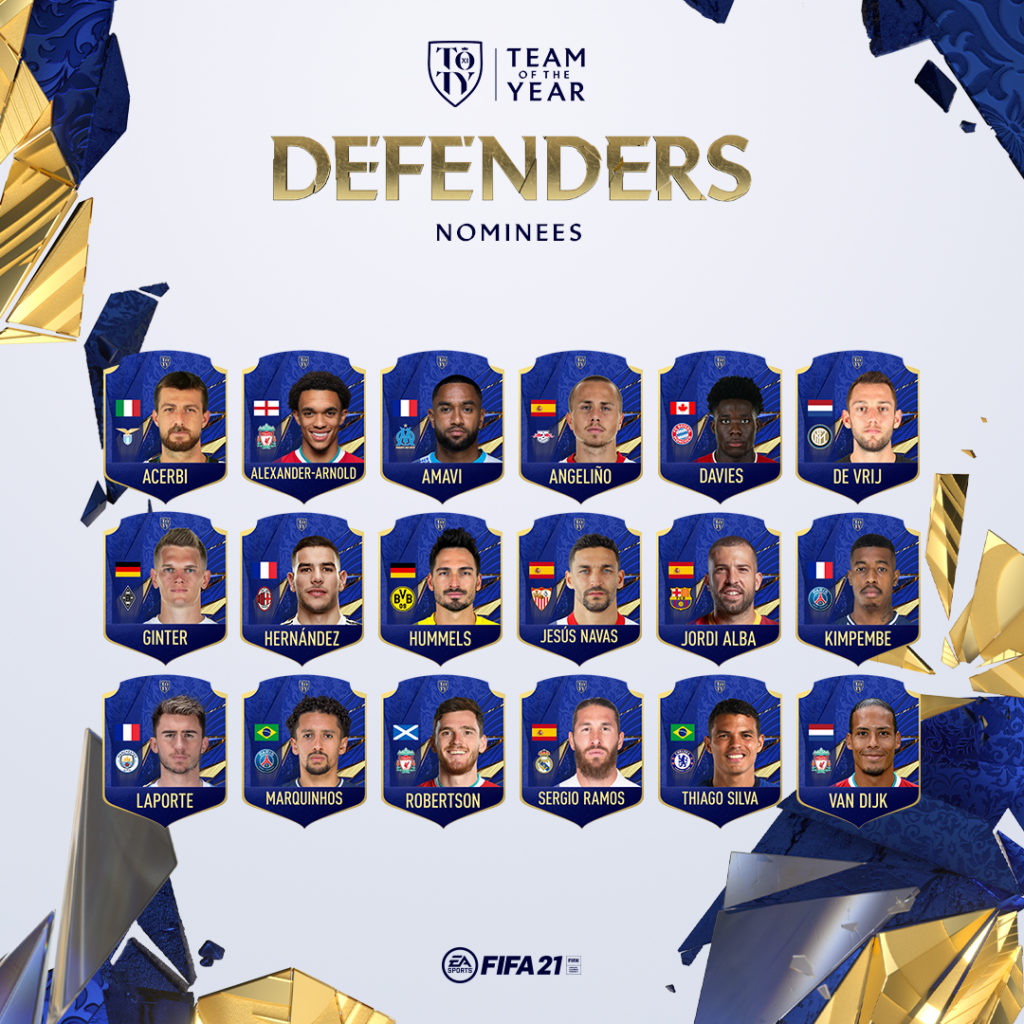 Fifa 21's team of the year consists of manuel neuer (gk), alphonso davies (lb), sergio ramos.